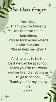 In pairs, year 2 wrote their own lines to include in our class prayer, after having a class discussion about what we feel are important values to uphold in our classroom. We then put the prayer together as a class.